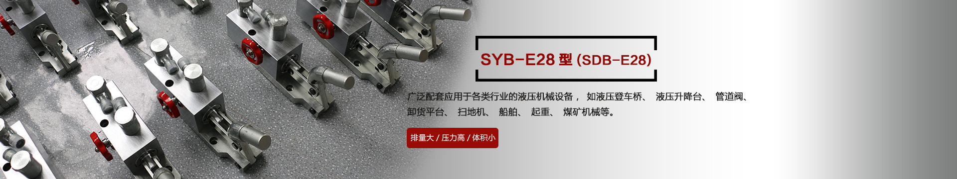 本產品SYB-E28型在本公司原有的SDB-E28型基礎上不斷改進改良,廣泛應用于各種行業的機械設備,如液壓登車橋、液壓升降臺、管道閥、卸貨平臺、掃地機、船舶、起重、煤礦機械等液壓機械設備上,效率高、結構緊湊,深受客戶的歡迎...